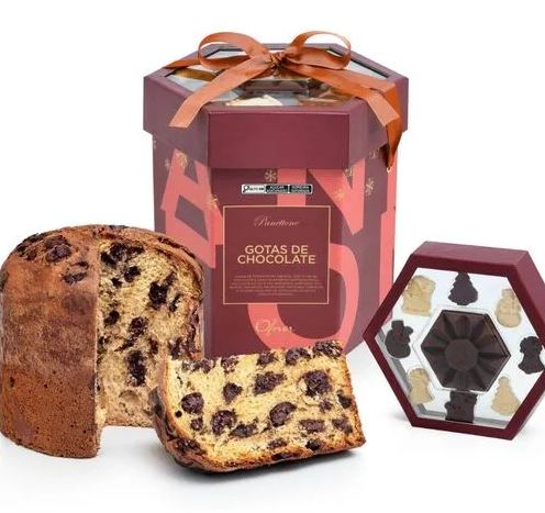Além do panetone, há ótimas opções de presentes, como caixas de bombons e outras delicias internacionais como o Stollen alemão (bolo artesanal com frutas cristalizadas e nozes) e o Bolo Rei (receita portuguesa de bolo artesanal com frutas cristalizadas, uvas-passas, amêndoas e nozes).